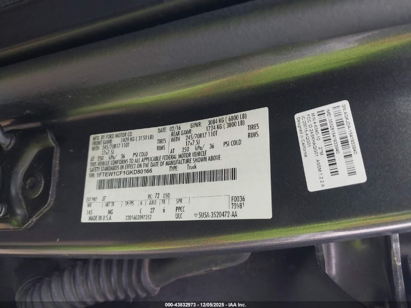 2016 FORD F-150 2016 року Бензин, 5.0, , vin - 1FTEW1CF1GKD80166 из США