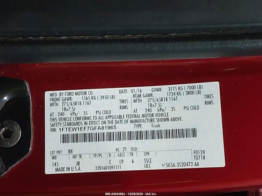 2016 FORD F-150 2016 року Бензин, 5.0, Полный привод, vin - 1FTEW1EF7GFA81965 из США