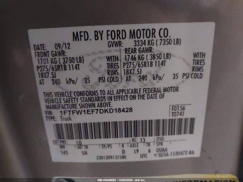 2013 FORD F-150 2013 року Бензин, 5.0, Полный привод, vin - 1FTFW1EF7DKD18428 из США