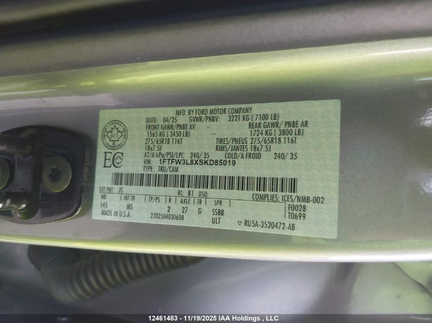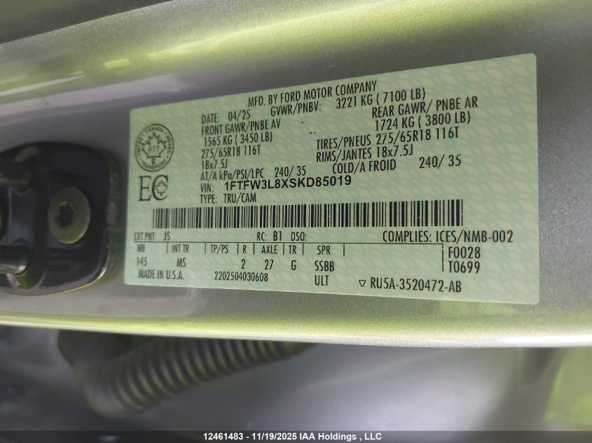 2025 FORD F-150 2025 року Бензин, , Полный привод, vin - 1FTFW3L8XSKD85019 из США