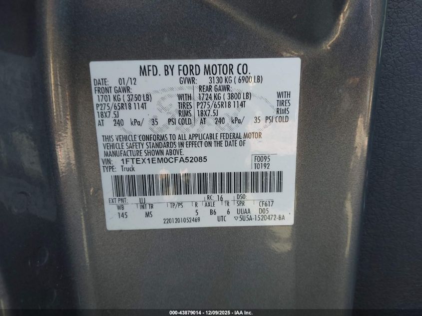 2012 FORD F-150 2012 року Бензин, 3.7, Полный привод, vin - 1FTEX1EM0CFA52085 из США