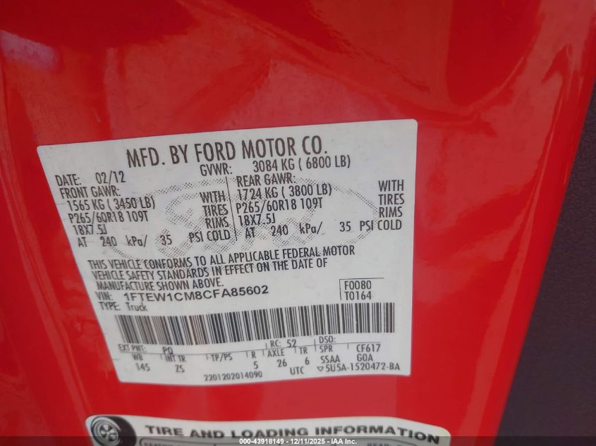 Цвет Цилиндры 6VIN 1FTEW1CM8CFA85602Состояние НеизвестноПовреждения Неизвестно AutoRIA