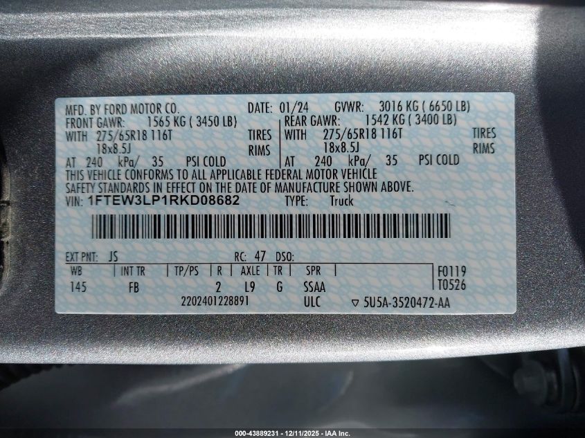 2024 FORD F-150 2024 року Бензин, 2.7, Полный привод, vin - 1FTEW3LP1RKD08682 из США