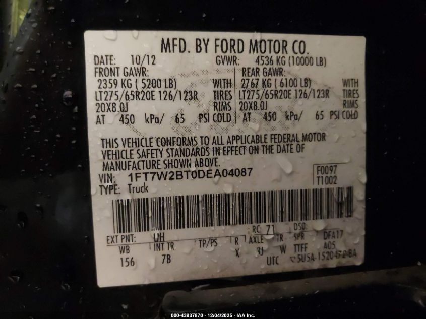 Цвет ЧерныйЦилиндры 8Привод Полный приводVIN 1FT7W2BT0DEA04087Состояние Заводится и едет (проверено)Повреждения Передняя или задняя AutoRIA