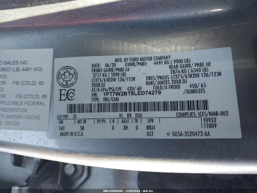 2020 FORD F-250 2020 року Дизель, 6.7, Полный привод, vin - 1FT7W2BT8LED74279 из США