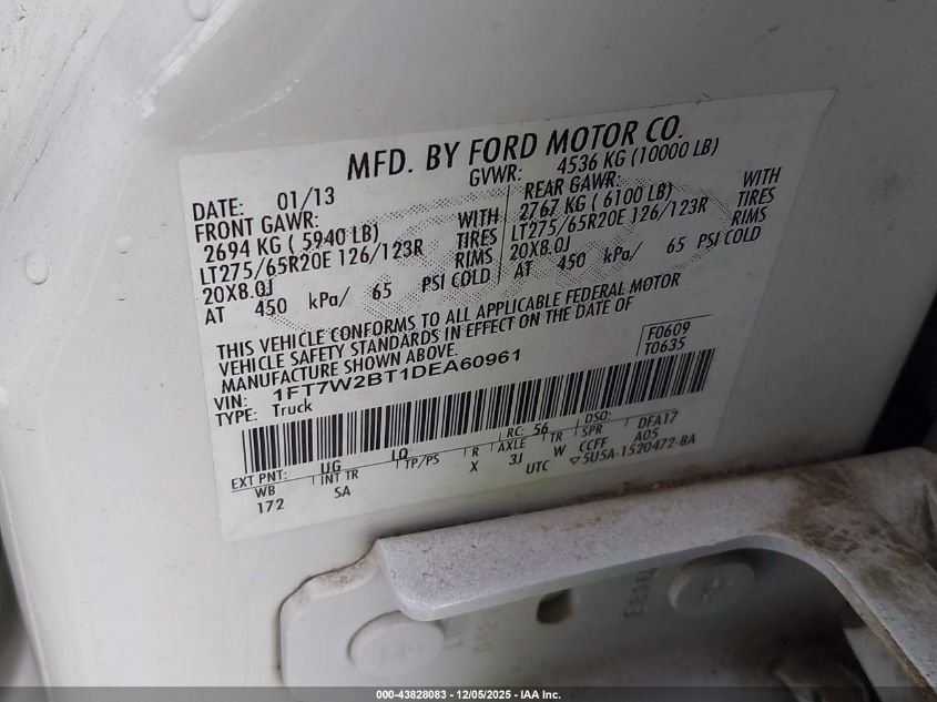 Цвет БелыйЦилиндры 8Привод Полный приводVIN 1FT7W2BT1DEA60961Состояние СтационарноПовреждения Град AutoRIA