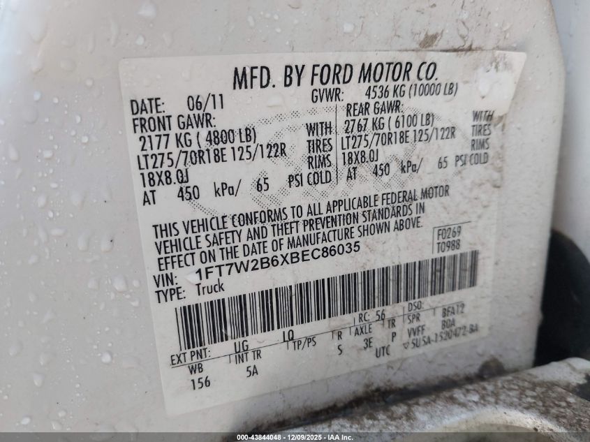 2011 FORD F-250 2011 року Бензин, 6.2, Полный привод, vin - 1FT7W2B6XBEC86035 из США