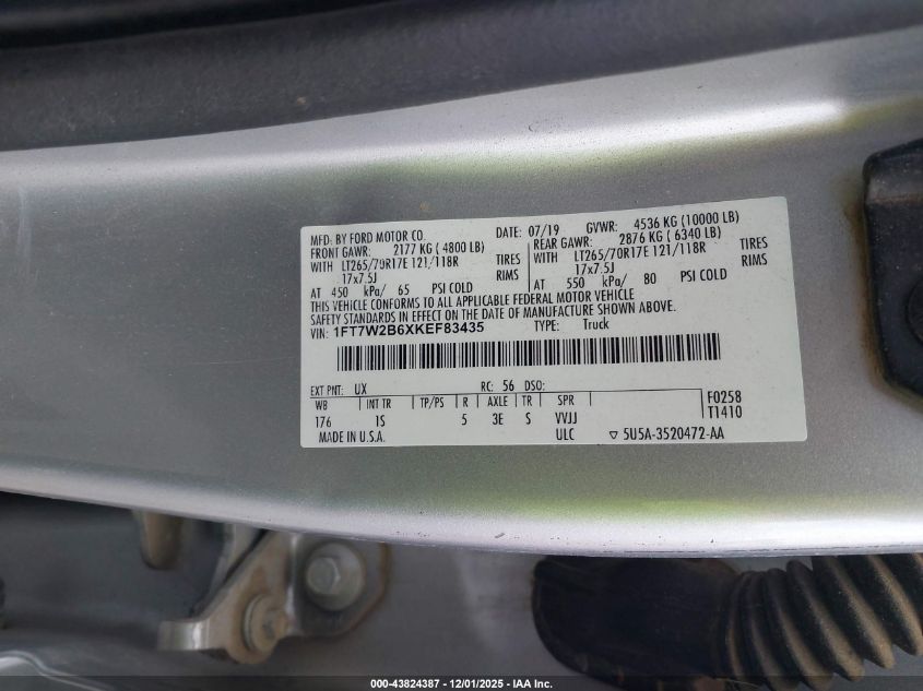 2019 FORD F-250 2019 року Бензин, 6.2, Полный привод, vin - 1FT7W2B6XKEF83435 из США