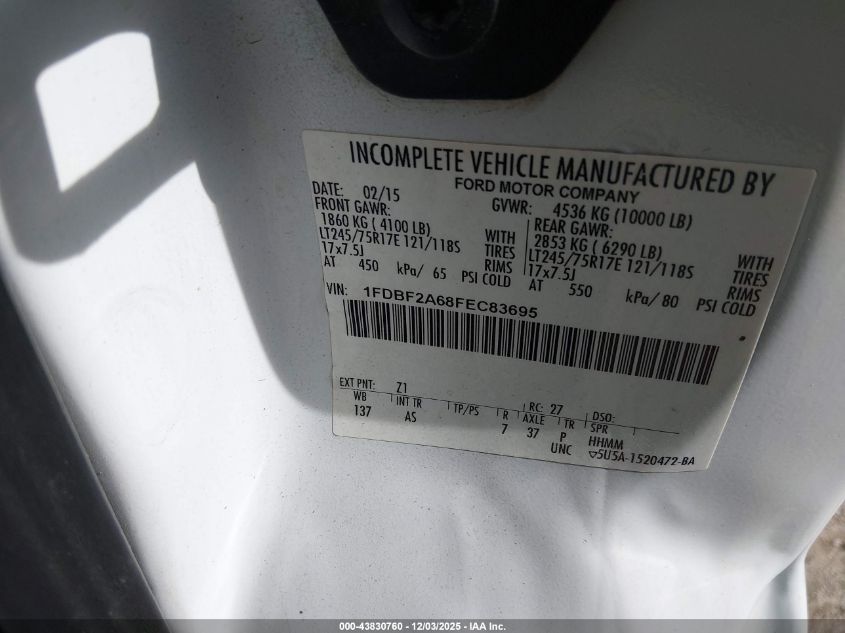 Цвет БелыйЦилиндры 8VIN 1FDBF2A68FEC83695Состояние СтационарноПовреждения Передняя или задняя