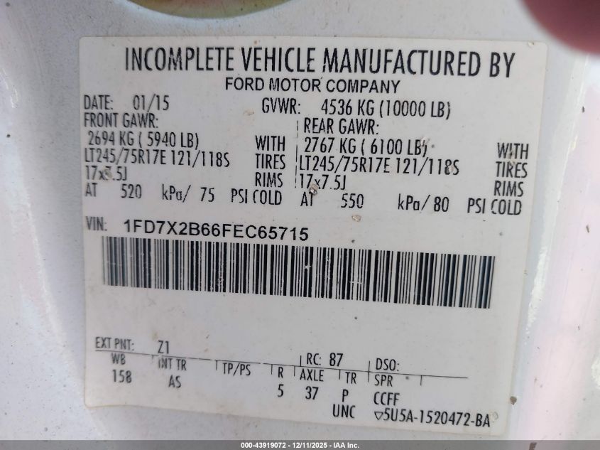2015 FORD F-250 2015 року Бензин, 6.2, Полный привод, vin - 1FD7X2B66FEC65715 из США