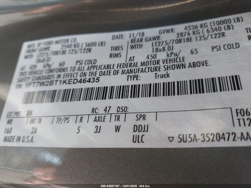 2019 FORD F-250 2019 року Дизель, 6.7, Полный привод, vin - 1FT7W2BT1KED46435 из США