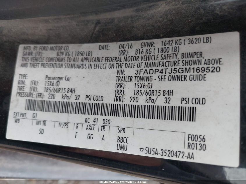 Цвет ЧерныйЦилиндры 4Привод Передний приводVIN 3FADP4TJ5GM169520Состояние Заводится и едет (проверено)Повреждения Правая сторона AutoRIA