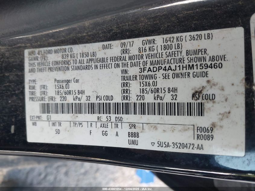 Цвет ЧерныйЦилиндры 4Привод Передний приводVIN 3FADP4AJ1HM159460Состояние Заводится и едет (проверено)Повреждения Передняя или задняя AutoRIA