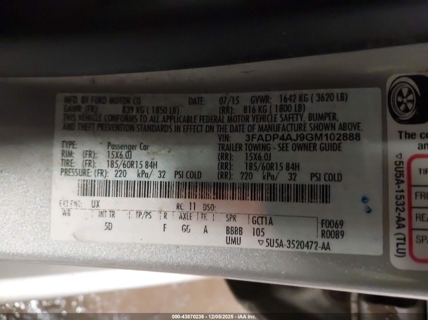 2016 FORD FIESTA 2016 року Бензин, 1.6, Передний привод, vin - 3FADP4AJ9GM102888 из США