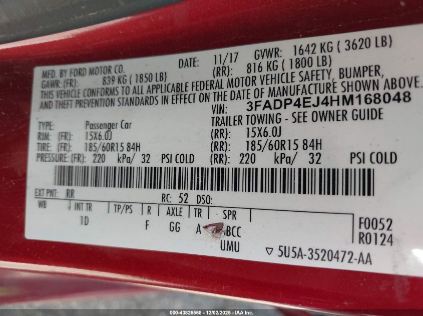 Цвет КрасныйЦилиндры 4Привод Передний приводVIN 3FADP4EJ4HM168048Состояние Заводится и едет (проверено)Повреждения Задняя AutoRIA