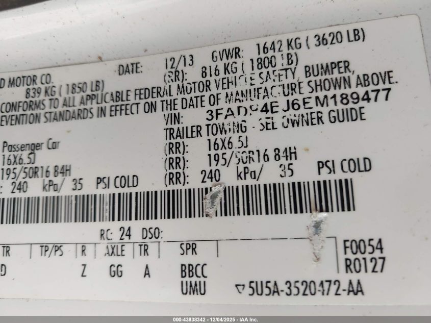 Цвет БелыйЦилиндры 4Привод Передний приводVIN 3FADP4EJ6EM189477Состояние Заводится и едет (проверено)Повреждения Передняя или задняя AutoRIA