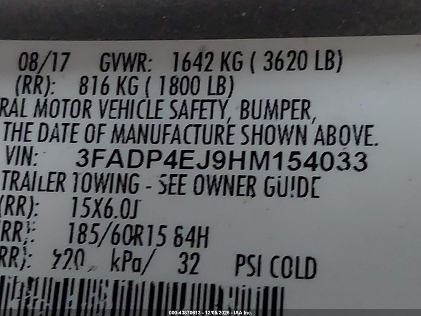 Цвет СеребряныйЦилиндры 4Привод Передний приводVIN 3FADP4EJ9HM154033Состояние Заводится и едет (проверено)Повреждения Задняя AutoRIA