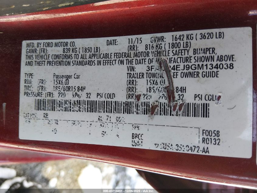 2016 FORD FIESTA S