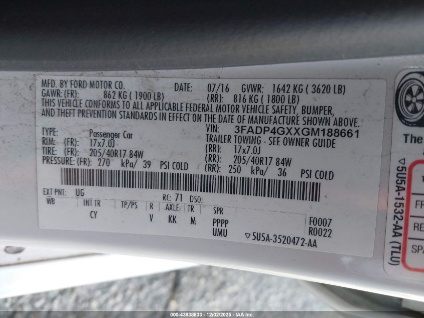 Цвет БелыйЦилиндры 4Привод Передний приводVIN 3FADP4GXXGM188661Состояние Заводится и едет (проверено)Повреждения Передняя или задняя AutoRIA