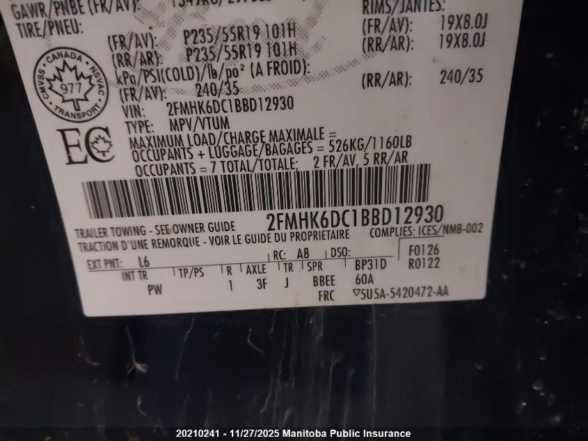 Цвет СинийЦилиндры 6Привод Полный приводVIN 2FMHK6DC1BBD12930Состояние СтационарноПовреждения ВандализмДата аукциона 2025-12-10