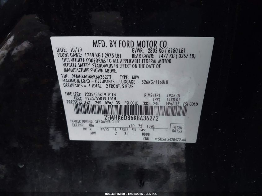 2019 FORD FLEX 2019 року Бензин, 3.5, Полный привод, vin - 2FMHK6D86KBA36272 из США