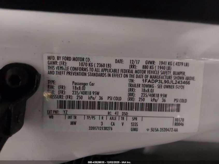 2018 FORD FOCUS 2018 року Бензин, 2.0, Передний привод, vin - 1FADP3L90JL243466 из США
