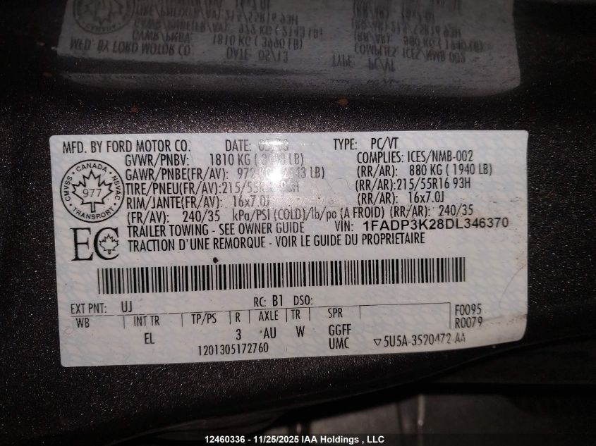 2013 FORD FOCUS 2013 року Бензин, , Передний привод, vin - 1FADP3K28DL346370 из США