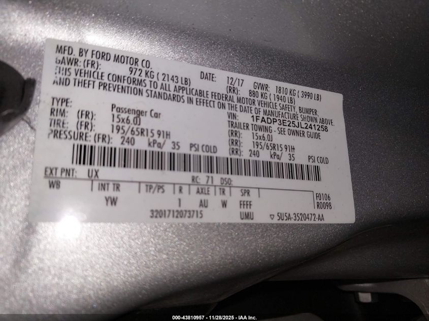 Цвет СеребряныйЦилиндры 4Привод Передний приводVIN 1FADP3E25JL241258Состояние Заводится и едет (проверено)Повреждения Задняя левая AutoRIA