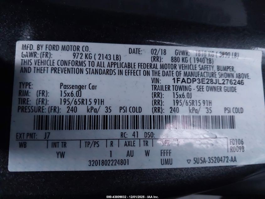 Цвет СерыйЦилиндры 4Привод Передний приводVIN 1FADP3E28JL276246Состояние СтационарноПовреждения Передняя или задняя AutoRIA