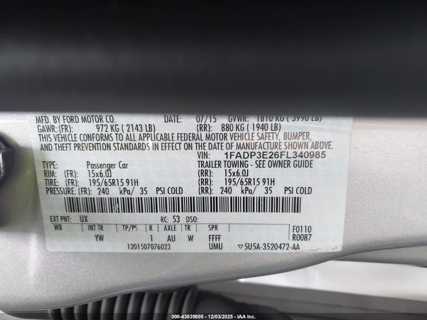 Цвет СеребряныйЦилиндры 4Привод Передний приводVIN 1FADP3E26FL340985Состояние Заводится и едет (проверено)Повреждения Передняя или задняя AutoRIA