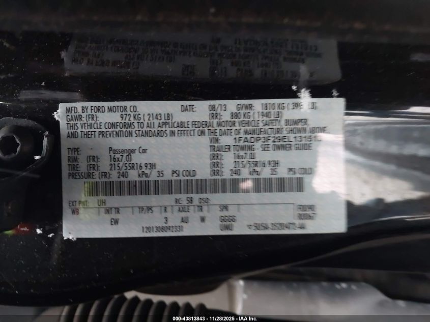 Цвет ЧерныйЦилиндры 4Привод Передний приводVIN 1FADP3F29EL131513Состояние СтационарноПовреждения Передняя правая AutoRIA