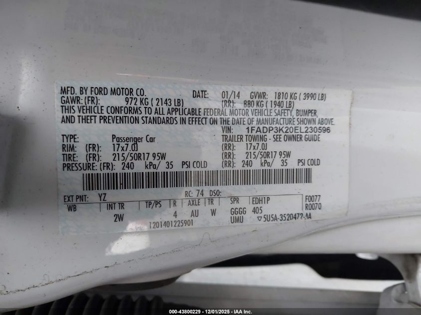 2014 FORD FOCUS 2014 року Бензин, 2.0, Передний привод, vin - 1FADP3K20EL230596 из США