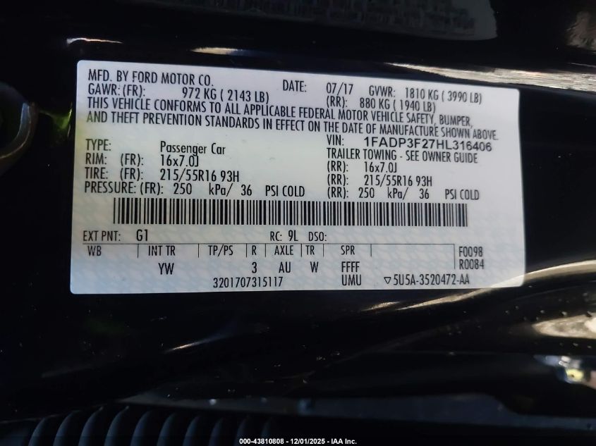 Цвет ЧерныйЦилиндры 4Привод Передний приводVIN 1FADP3F27HL316406Состояние Заводится и едет (проверено)Повреждения Задняя AutoRIA
