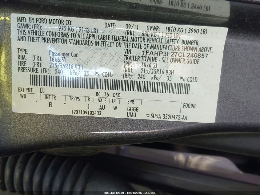 2012 FORD FOCUS 2012 року Бензин, 2.0, Передний привод, vin - 1FAHP3F27CL240857 из США