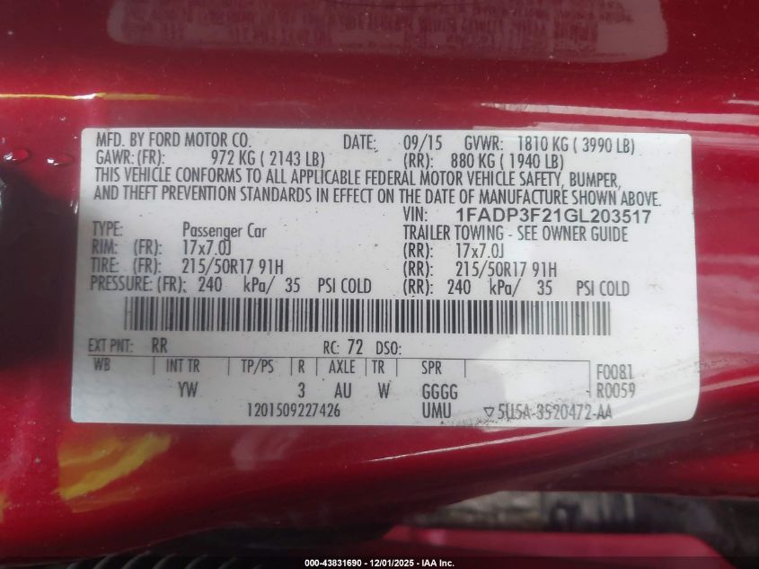 2016 FORD FOCUS SE