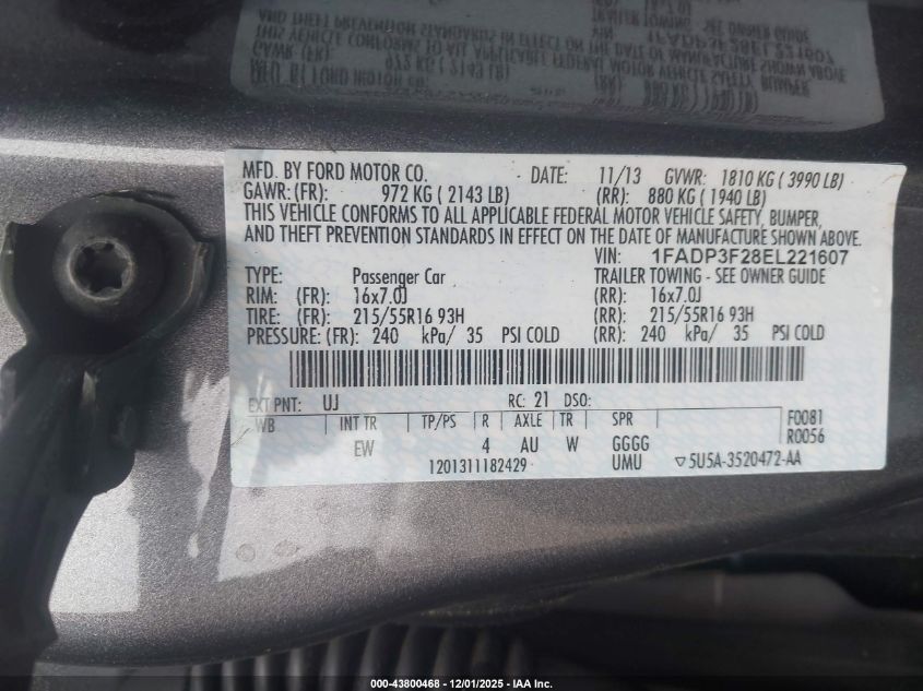 2014 FORD FOCUS 2014 року Бензин, 2.0, Передний привод, vin - 1FADP3F28EL221607 из США