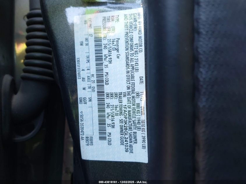 Цвет СерыйЦилиндры 4Привод Передний приводVIN 1FADP3K28GL241039Состояние Заводится и едет (проверено)Повреждения Передняя или задняя AutoRIA