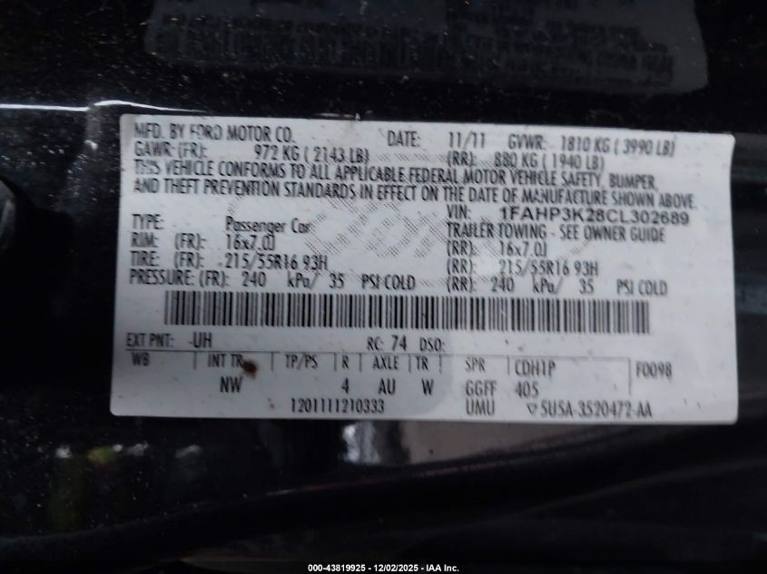 Цвет ЧерныйЦилиндры 4Привод Передний приводVIN 1FAHP3K28CL302689Состояние Заводится и едет (проверено)Повреждения Передняя или задняя AutoRIA