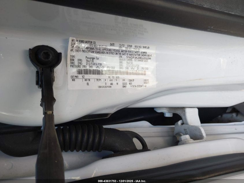 Цвет БелыйЦилиндры 4Привод Передний приводVIN 1FADP3K29EL232296Состояние СтационарноПовреждения Левая сторона AutoRIA