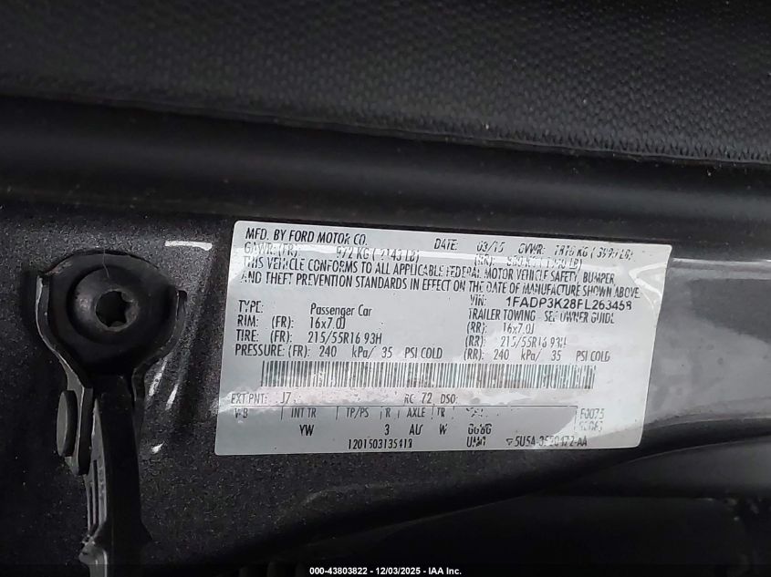 Цвет СерыйЦилиндры 4Привод Передний приводVIN 1FADP3K28FL263458Состояние Заводится и едет (проверено)Повреждения Передняя левая AutoRIA