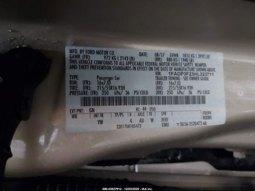 Цвет ЗолотойЦилиндры 4Привод Передний приводVIN 1FADP3F23HL323711Состояние Заводится и едет (проверено)Повреждения Передняя правая AutoRIA