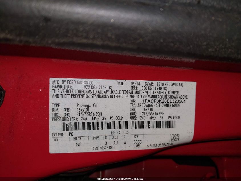 Цвет КрасныйЦилиндры 4Привод Передний приводVIN 1FADP3K28EL323561Состояние Заводится и едет (проверено)Повреждения Левая сторона AutoRIA