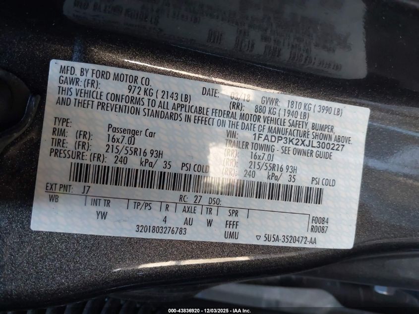 Цвет СерыйЦилиндры 4Привод Передний приводVIN 1FADP3K2XJL300227Состояние Заводится и едет (проверено)Повреждения Задняя левая AutoRIA
