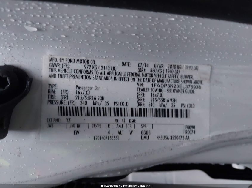 Цвет БелыйЦилиндры 4Привод Передний приводVIN 1FADP3K23EL375938Состояние СтационарноПовреждения Мотор AutoRIA