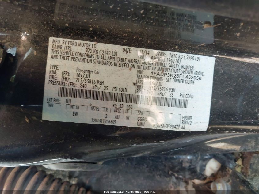 Цвет ЧерныйЦилиндры 4Привод Передний приводVIN 1FADP3K28EL452058Состояние СтационарноПовреждения Передняя или задняя AutoRIA