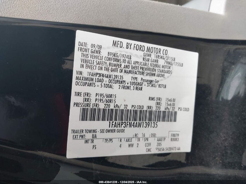 2010 FORD FOCUS 2010 року Бензин, 2.0, Передний привод, vin - 1FAHP3FN4AW139135 из США