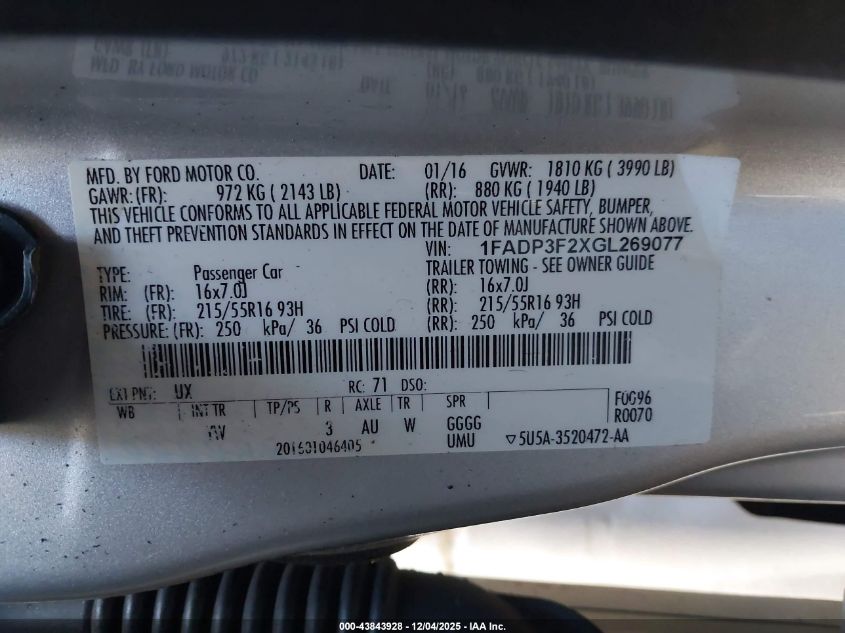2016 FORD FOCUS SE