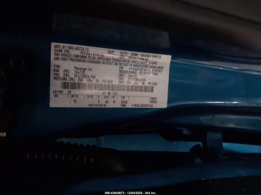 2016 FORD FOCUS 2016 року Бензин, 2.0, Передний привод, vin - 1FADP3F20GL218123 из США