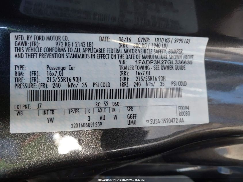 2016 FORD FOCUS SE