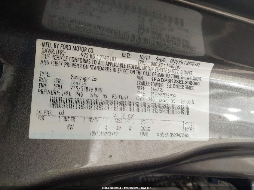 Цвет СерыйЦилиндры 4Привод Передний приводVIN 1FADP3K23EL208060Состояние СтационарноПовреждения По бокам AutoRIA